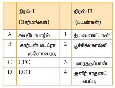 13. நிரல் Iல் தரப்பட்டுள்ள சேர்மங்களை நிரல் IIல் கொடுக்கப்பட்டுள்ள அதன் பயன்களுடன் பொருத்துக.