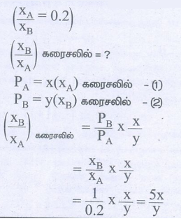 11. A மற்றும் B எனும் இரண்டு வாயுக்களின் ஹென்றி விதி மாறிலி மதிப்புகள் முறையே x மற்றும் y. A உடனான B யின் மோல் பின்ன விகிதம் 0.2. நீரில் கரையும் B மற்றும் A யின் மோல் பின்ன விகிதம்