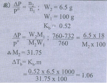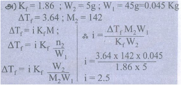 27. நீரின் உறைநிலைத் தாழ்வு மாறிலி மதிப்பு 1.86 K Kgmol-1 . 45 கிராம் நீரில், 5g Na2SO4 ஐ கரைக்கும்போது, உறைநிலையில் ஏற்படும் தாழ்வு 3.64oC. Na2SO4 இன் வாண்ட் ஹாஃப் காரணி மதிப்பு