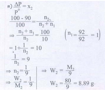 20. 92 கிராம் டொலுயீனின், ஆவிஅழுத்தத்தை 90% க்கு குறைப்பதற்கு, அதில் கரைக்கத் தேவையான எளிதில் ஆவியாகாத கரைபொருளின் நிறை (மோலார் நிறை 80 g mol-1)