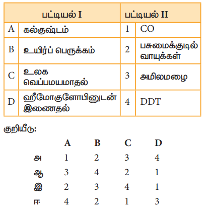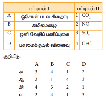 பல்வேறு வினாக்களுக்கான கேள்வி பதில்கள் - சரியான விடையினைத் தேர்வு செய்க | 11th Chemistry : UNIT 15 : Environmental Chemistry