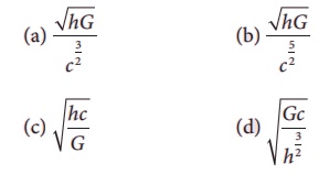 14. பிளாங் மாறிலி (h) வெற்றிடத்தின் ஒளியின் திசைவேகம் (c) மற்றும் நியூட்டனின் ஈர்ப்பு மாறிலி (G) ஆகிய மூன்று அடிப்படை மாறிலிகள் கொண்டு பெறப்படும் கீழ்காணும் எந்த தொடர்பு நீளத்தின் பரிமாணத்தைப் பெற்றிருக்கும்.