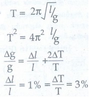 3. அலைவுறும் ஊசலின் நீளம் மற்றும் அலைவுநேரம் பெற்றுள்ள பிழைகள் முறையே 1% மற்றும் 3% எனில் ஈர்ப்பு முடுக்கம் அளவிடுதலில் ஏற்படும் பிழை