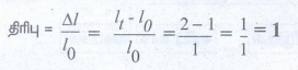2. ஒரு கம்பியானது அதன் தொடக்க நீளத்தைப் போல இரு மடங்கு நீட்டப்பட்டால் கம்பியில் ஏற்பட்ட திரிபு