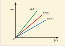3. ஒரே பொருளால் ஆன மூன்று கம்பிகளின் பளு நீட்சி வரைபடம் படத்தில் காட்டப் பட்டுள்ளது. கீழ்க்கண்டவற்றுள் தடிமனான கம்பி எது?