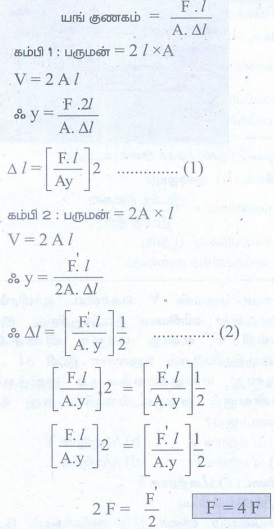 1. x மற்றும் y என்ற இரு கம்பிகளைக் கருதுக. X கம்பியின் ஆரமானது y கம்பியின் ஆரத்தைப்போல 3 மடங்கு உள்ளது. அவை சமமான பளுவால் நீட்டப்பட்டால் y - இன் மீதான தகைவு