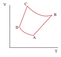10. A→B→C→D என்ற மீள் சுற்று நிகழ்வில் (Cyclic process) உள்ள நல்லியல்பு வாயுவின் V-T வரைபடம் காட்டப் பட்டுள்ளது. (இங்கு D→A மற்றும் B→C இவ்விரண்டும் வெப்பப்பரிமாற்றமில்லா நிகழ்வுகள்)