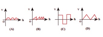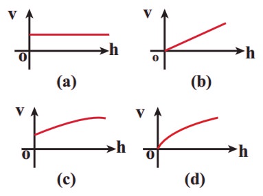 14. சீரான கயிறு ஒன்று m நிறையுடன் நிலையான அமைப்பிலிருந்து செங்குத்தாகத் தொங்குகிறது. கீழ்முனையில் ஒரு குறுக்கலை துடிப்பு ஏற்படுத்தப்படுகிறது. கீழ் முனையிலிருந்து இந்த துடிப்பு மேலேழும் வேக மாறுபாடு (v) கீழிருந்து உயரம் (h) யை பொருத்தது காட்டும் வரைபடம்