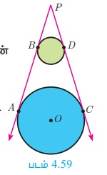 Pஎன்ற புள்ளியிலிருந்து இரு வட்டங்களுக்கு வரையப்பட்ட தொடுகோட்டின் நீளங்கள் சமமாக இருக்கும்.