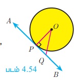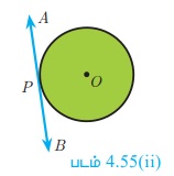 படம் 4.60-யில் PQ என்ற நாண் வட்டத்தினை இரு துண்டுகளாகப் பிரிக்கிறது. P என்ற புள்ளி வழியே வட்டத்தைத் தொட்டுக்கொண்டு செல்லுமாறு AB என்ற தொடுகோடு வரைக.