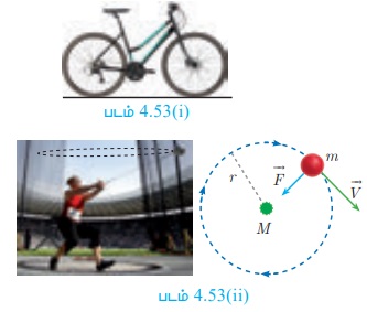 (ii) ஒரு கம்பியின் ஒரு முனையில் கல்லினைக் கட்டி, மறுமுனையினைக் கையினால் சுழற்றும்போது கல்லானது ஒரு வட்டப்பாதையை ஏற்படுத்தும். திடீரென்று கையிலிருந்து கம்பியினை விடும் பொழுது கல்லானது வட்டத்தின் தொடுகோட்டின் திசையில் செல்வதைக் காணலாம்.