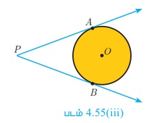 (iii) வட்டத்திற்கு வெளியேயுள்ள புள்ளியிலிருந்து அவ்வட்டத்திற்கு இரண்டு தொடுகோடுகள் வரைய முடியும்.
