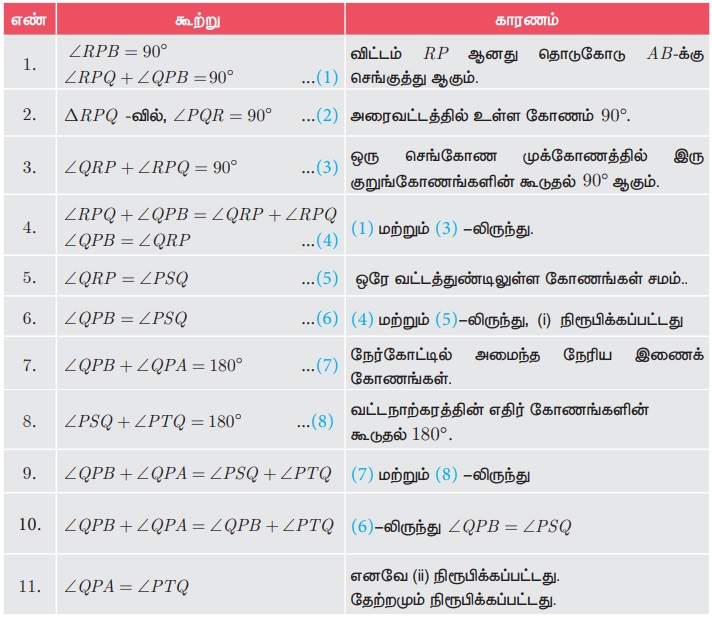 நிரூபிக்க: (i) ∠QPB = ∠PSQ மற்றும் (ii) ∠QPA = ∠PTQ