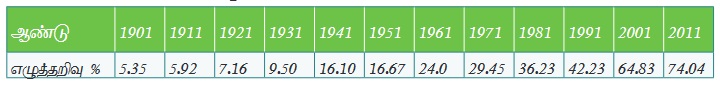 அட்டவணை 12.1 இந்தியாவின் எழுத்தறிவு விகிதம் 1901 – 2011