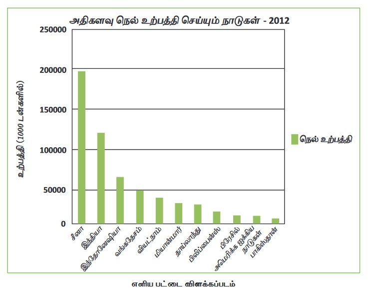 அட்டவணை 12.3 ல் கொடுக்கப்பட்டுள்ள தரவினை பின்வரும் முறையில் எளிய பட்டை விளக்கப்படத்தில் குறிக்கலாம்.