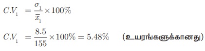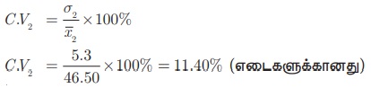 எனவே, முதல் தரவின் மாறுபாட்டுக் கெழு (C.V1) = σ1/x1 ×100%