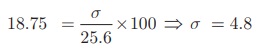 = 25.6 , மாறுபாட்டுக் கெழு, C.V. = 18.75