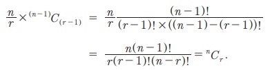 நிரூபணம் வரிசை மாற்றங்களுக்கும், சேர்வுகளுக்கும் இடையேயான தொடர்பிலிருந்து நாம் (வரிசை மாற்றத்தின் முடிவிலிருந்து) எனப் பெறலாம்.