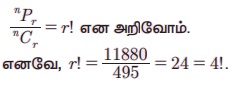 எடுத்துக்காட்டு 4.47 nPr = 11880 மற்றும் nCr = 495 எனில் n மற்றும் r-ன் மதிப்புகளைக் காண்க.