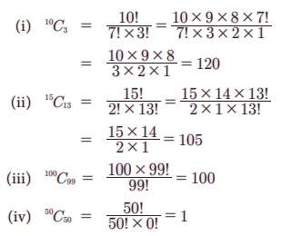 (i) 10C3 (ii) 15C13 (iii) 100C99 (iv) 50C50