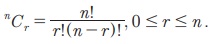 n வெவ்வேறான பொருட்களிலிருந்து ஒரு சமயத்தில் r பொருட்களை தேர்வு செய்யும் சேர்வுகளின் எண்ணிக்கை