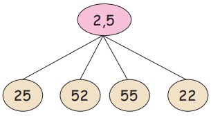 எடுத்துக்காட்டு : பகடையில் 2 மற்றும் 5 ஆகிய எண்கள் கிடைத்தால் அவற்றைக் கொண்டு உருவாக்கப்படும் எண்கள் கொடுக்கப்பட்டுள்ளன.