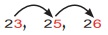 இங்கே பத்துகள் சமமாக உள்ளன. எனவே ஒன்றுகளை ஒப்பிடுவோம். 23, 25, 26