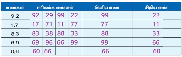 ii) கொடுக்கப்பட்டுள்ள எண்சோடிகளில் சிறிய எண்ணை ‘✔’ செய்க.