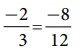 பகுதிகளின் மீ.சி.ம 12 ஆகும். (கண்டுபிடிக்கவும்!) ஒவ்வொரு விகிதமுறு எண்ணிற்கும் 12 ஐ பகுதியாகக் கொண்ட ஒரு சமான விகிதமுறு எண்ணைக் கண்டறிக. நாம் பெறுவது =