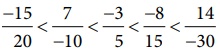 வகை 1: எதிரெதிர் குறிகளைக் கொண்ட இரு விகிதமுறு எண்களை ஒப்பிடுதல்