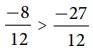 நாம் பகுதிகள் சமமாக உள்ளதை பார்க்கிறோம். ஆகவே, தொகுதிகளான −27 மற்றும் −8 ஐ மட்டும் ஒப்பிடுவது போதுமானதாகும்.