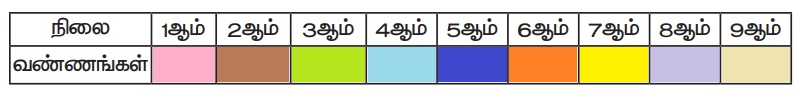 குறிப்பிட்ட நிலையில் உள்ள கட்டத்தில் இடப்பட்டுள்ள வண்ணத்தை இடுக.