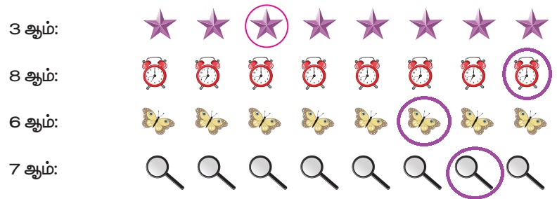 எண்ணிக்கையினை □ ல் இட்டு, பெரிய எண்ணிற்கு (✔) செய்க.