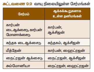 திரவநிலையிலுள்ள சேர்மங்கள் அட்டவணை 9.8 ல் கொடுக்கப்பட்டுள்ளன.
