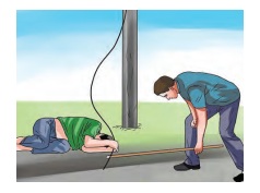 III. மின்கடத்தாப் பொருட்களைக் கொண்டு அவரை மின்கம்பியின் தொடர்பிலிருந்து