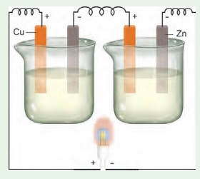 படத்தில் காட்டியவாறு தாமிரம், துத்தநாகத் தகடுகளை தொடர் இணைப்பில்