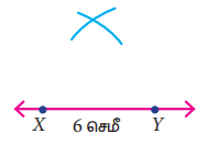 படி 1: ஒரு நேர்கோடு வரைக. XY = 6 செ.மீ உள்ளவாறு கோட்டின் மீது X மற்றும் Y ஐக் குறிக்க.