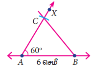 AB = 6 செ.மீ, AC = 5 செ.மீ மற்றும் ∠A = 60° உள்ளவாறு ∆ABC வரைக.