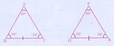 3. இரண்டு கோணங்கள் மற்றும் கொடுக்கப்பட்ட கோணங்களைத் தாங்கும் பக்கம் கொடுக்கப்பட்டிருத்தல். கோணம்-பக்கம்-கோணம் கொள்கை (கோ-ப-கோ).