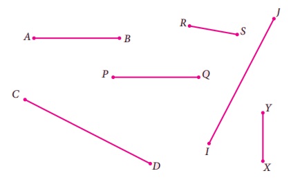 பின்வரும் கோட்டுத்துண்டுகளை அளந்து சர்வசமக் கோட்டுத்துண்டுகளின் இணைகளாக வகைப்படுத்துக.