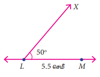 படி 2: L இல் LM உடன், 50° கோணத்தை ஏற்படுத்துமாறு கதிர் LX வரைக.