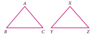 பின்வரும் இரு முக்கோணங்களான ∆ABC மற்றும் ∆XYZ ஐ உற்று நோக்குக.