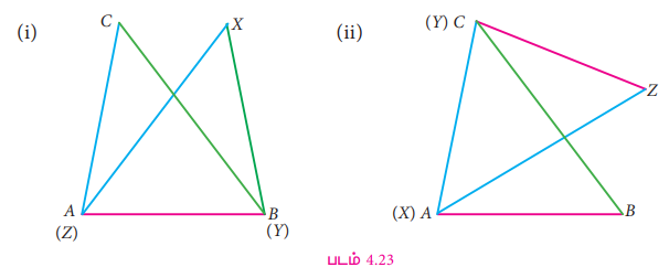 (i) ∆ABC ≅ ∆XYZ எனில், ஒத்த பக்கங்கள் மற்றும் ஒத்த கோணங்களை எழுதுக.