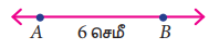 படி 1: ஒரு நேர்கோடு வரைக. AB = 6 செ.மீ உள்ளவாறு A மற்றும் B என்ற புள்ளிகளை அதன் மீது குறிக்க.