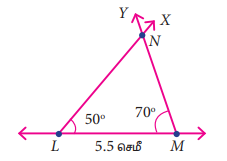 LM = 5.5 செ.மீ, ∠M = 70°d ∠L = 50° உள்ளவாறு ∆LMN.