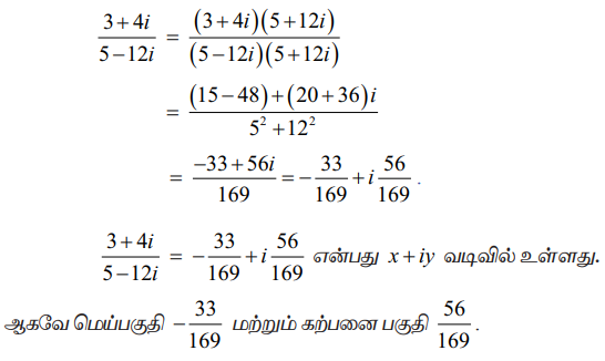 −ஐ x + iy வடிவில் எழுதுக. இதிலிருந்து மெய் மற்றும் கற்பனை பகுதிகளைக் காண்க.