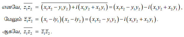 z1 = x1 + iy1, z2 = x2 + iy2, மற்றும் x1, x2, y1 மற்றும் y2 ∈ ℝ என்க.
