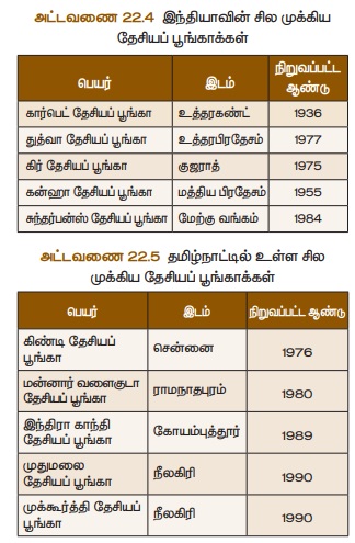 மேற்கொள்ளப்படுகிறது. இந்தியாவில், சுமார் 73 தேசியப் பூங்காக்கள், 416 சரணாலயங்கள்