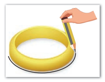 படி : 2 வளையலின் சுற்றுக் கோட்டினை தொடக்கப் புள்ளியை அடையும் வரை படி எடுத்தால் (Trace) நமக்கு ஒரு வட்டம் கிடைக்கும்,