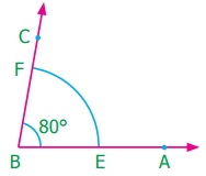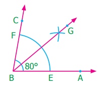 80° அளவுடைய ∠ABC இன் கோண இரு சமவெட்டி வரைக.